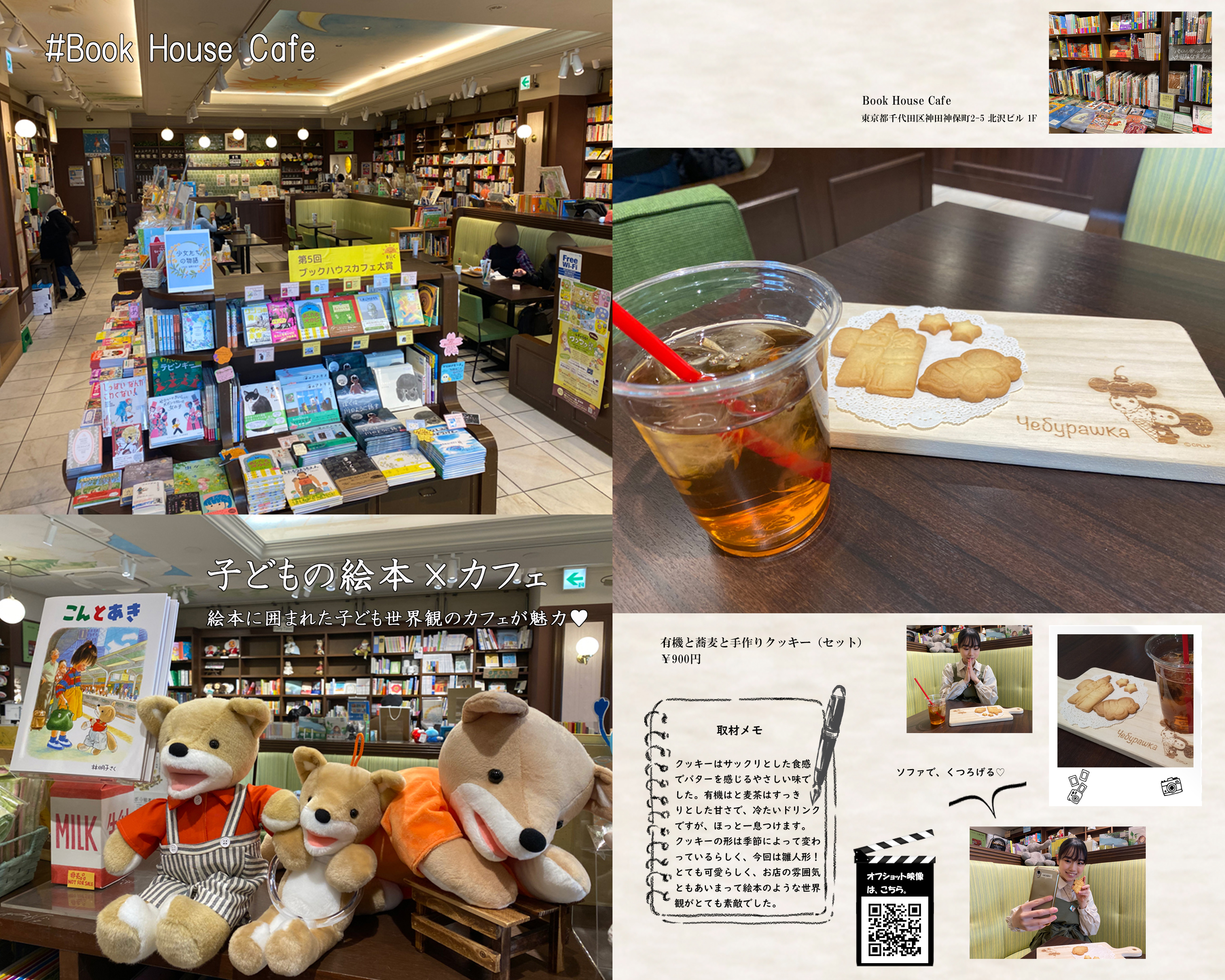 クッキーはサックリとした食感でバターを感じるやさしい味でした。有機はと麦茶はすっきりとした甘さで、冷たいドリンクですが、ほっと一息つけます。クッキーの形は季節によって変わっているらしく、今回は雛人形!とても可愛らしく、お店の雰囲気ともあいまって絵本のような世界観がとても素敵でした。