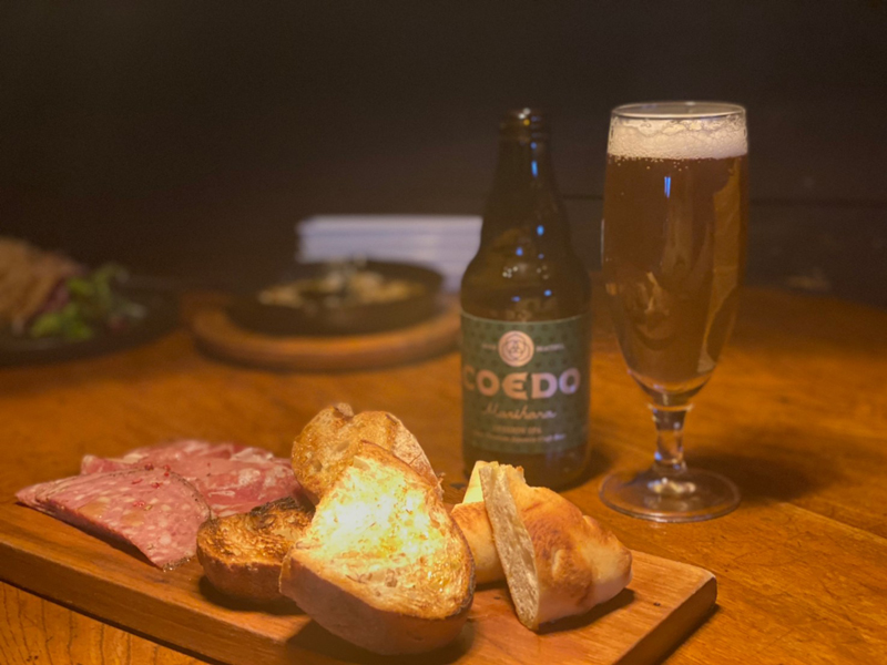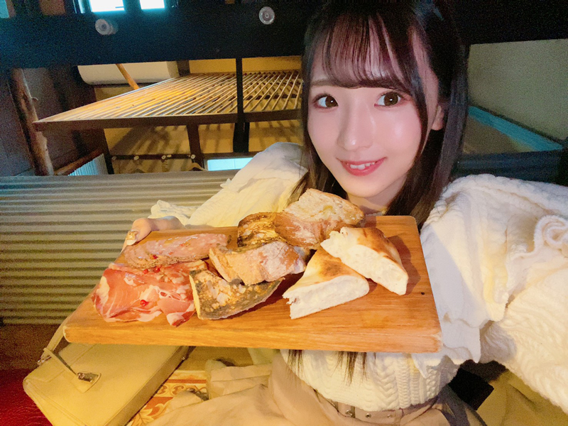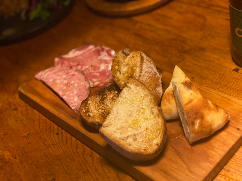 お通しのバケット(パン)が食べ放題♡サクッとモチっとしてるのでいくらでも食べられちゃいそう!!って思ってたらなんとおかわり自由!!一緒についてくる生ハムやサラミと食べたら、もう…!!ビールが止まらない!!♡