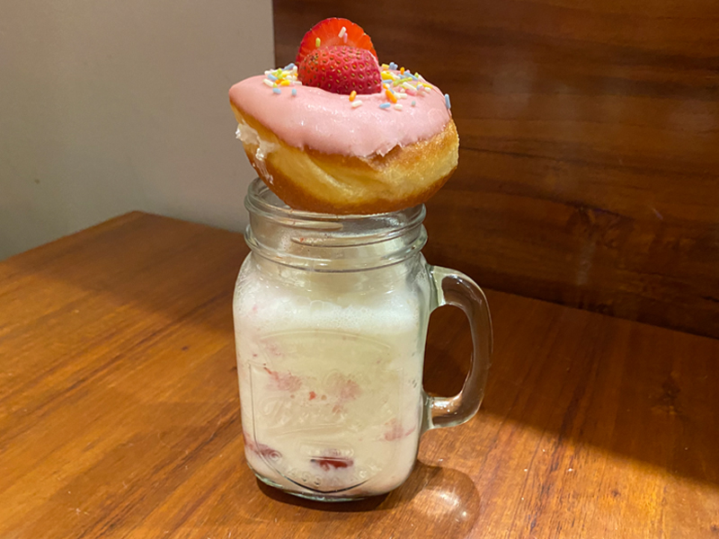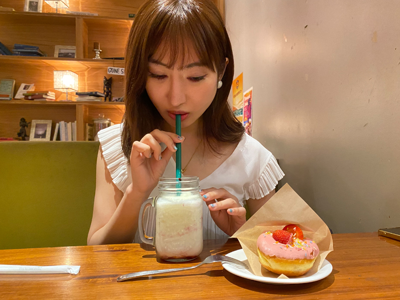 流行りのドリンクの上にドーナッツが乗ってるインスタ映え抜群のスイーツですっ!🍩🥤🫧あまーいドーナッツとさっぱり目のいちごミルクがとってもベストマッチ!🍓🙌ちょうどいい大きさなのでご飯後のデザートにも、小腹が空いたときにもおすすめです🫶🤤お店もハワイアンテイストでデートにも女子会にもぴったりです!💕🌺🐠♡