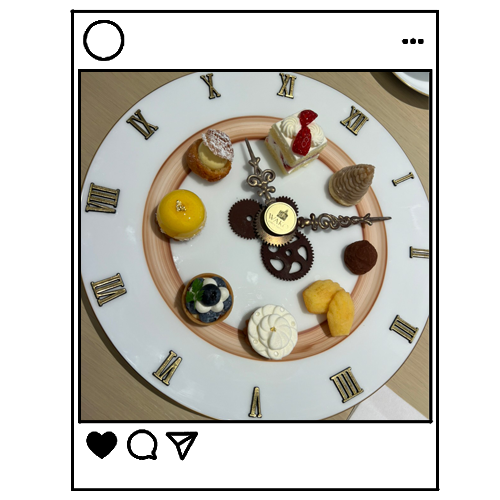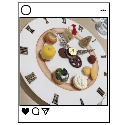 色んな種類のプティスイーツが楽しめるプレート!全て違う種類、違うテイストなので飽きずに食べれちゃう!時計の針や歯車もチョコレートでできていて遊び心も🙆●♀️