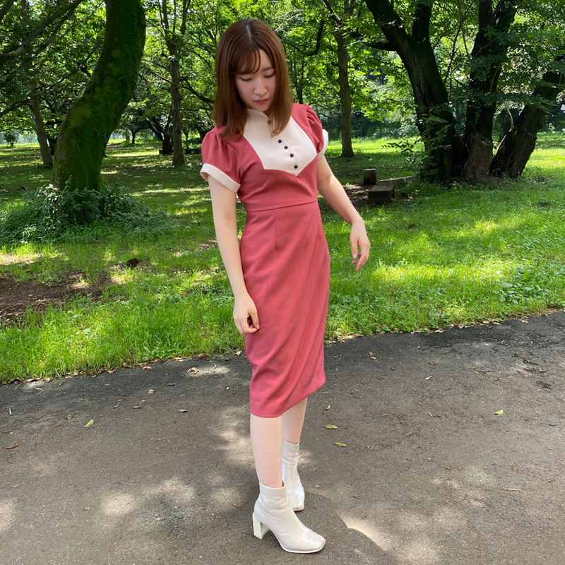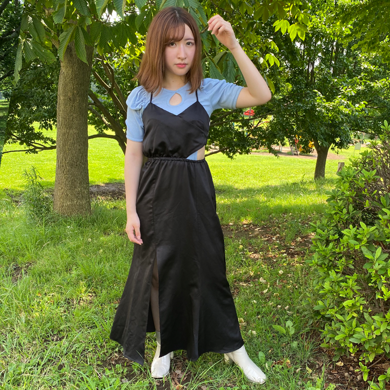 このブルーは私自身顔色がよく見える色のためお気に入りです(笑)胸元のボタンは色々な種類のデザインになっているのがポイントです。