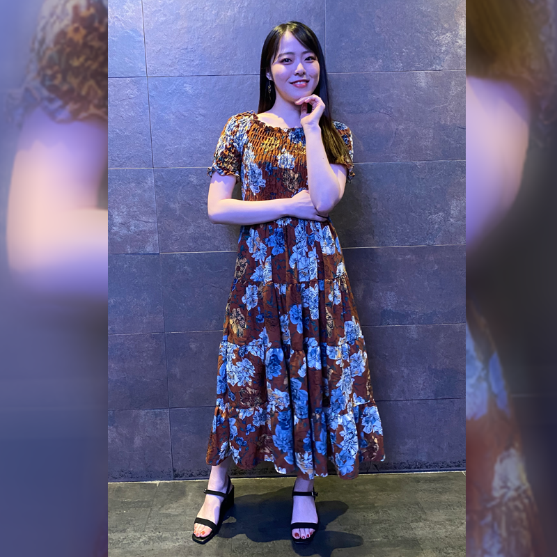 ウエスト部分を絞ってスタイルをよく見せるのがこのワンピのポイントです♪