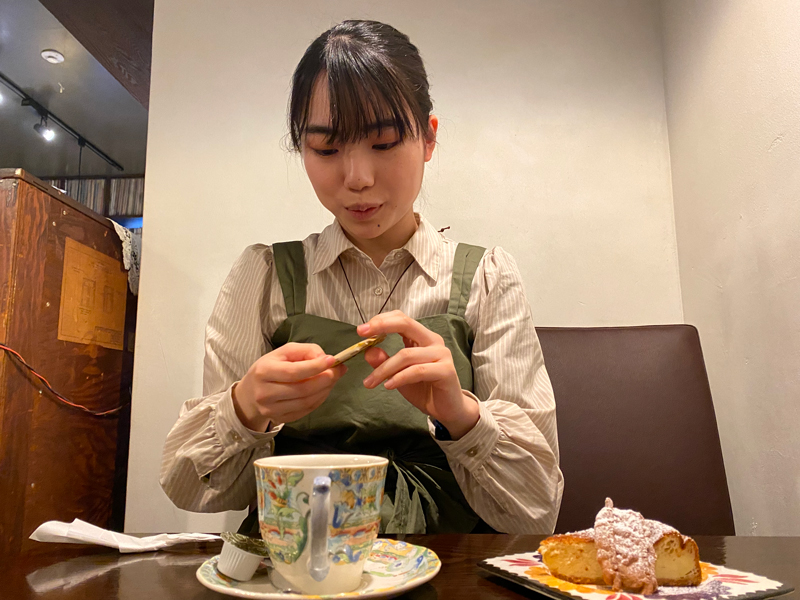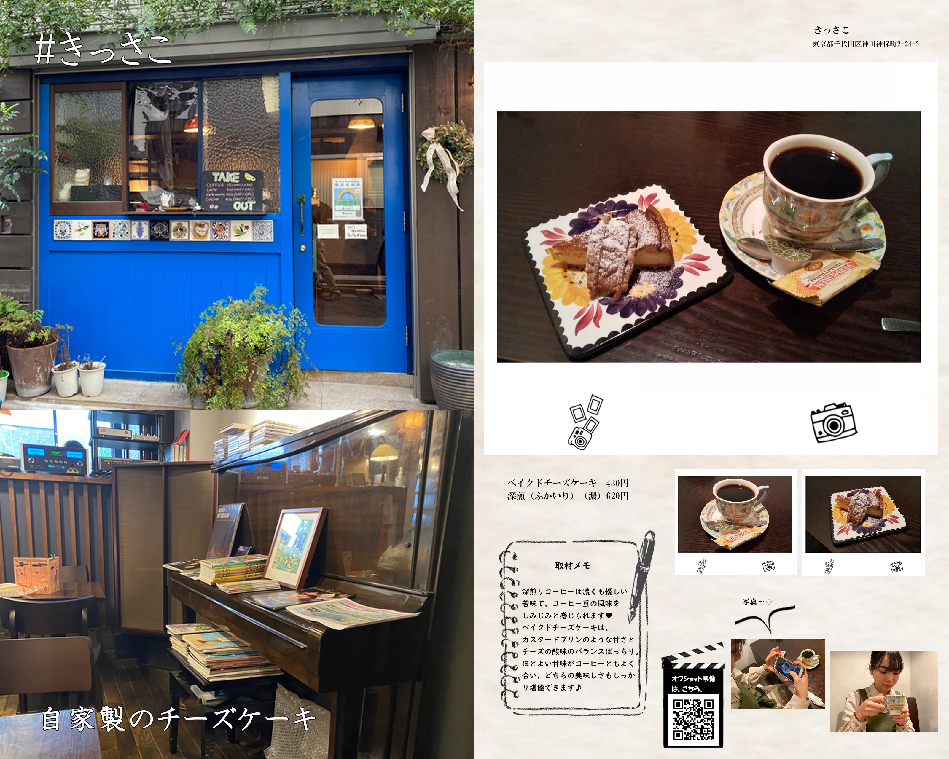 "きっさこ"のベイクドチーズケーキは、食べたことのないチーズケーキ!カスタードプリンのような甘さとチーズの酸味とのバランスがばっちりです。かつ全体的には軽やかな風味で、ほどよい甘味がコーヒーともよく合い、どちらの美味しさもしっかり堪能できます♪添えつけのカラメルビスケットはカラメルの風味が香ばしく、カリっとした固めの食感が癖になります。こちらもコーヒーにとってもよく合っていて美味しかったです!