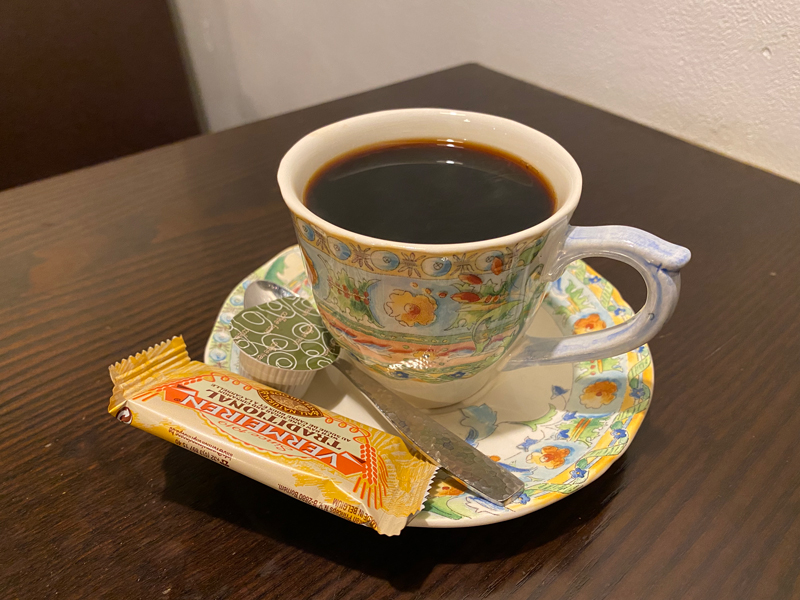 深煎りコーヒーは濃くも優しい苦味で、コーヒー豆の風味をしみじみと感じられます。オシャレで素敵なカップ。クッキーも素敵♡